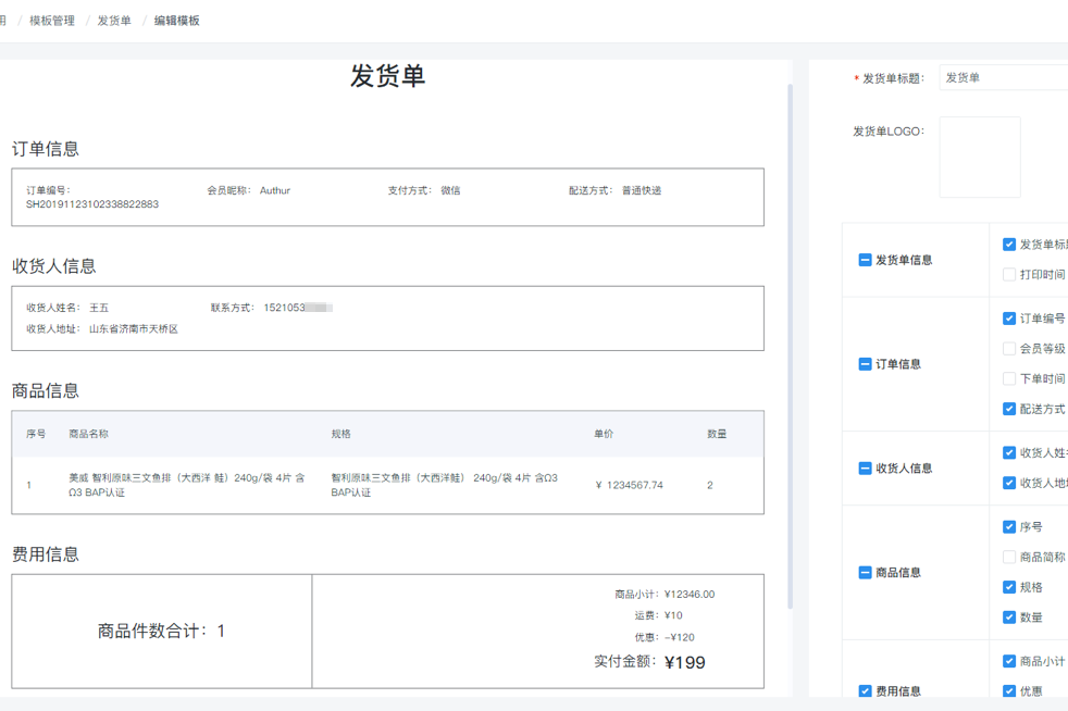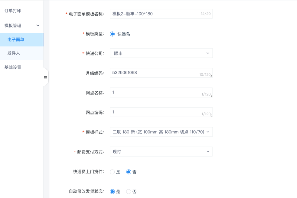 电子面单可进行发件人模板设置;发货单模板可按需设置