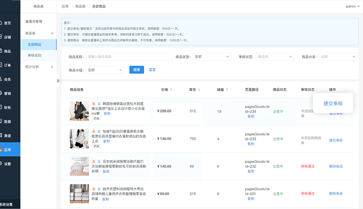 在售商品支持一键提交审核,免去原微信繁杂提审流程