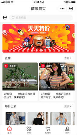 以直播、视频方式,吸引触发用户对商城和商品的进一步关注,进入品牌直播间观看新品展示,通过优惠券、限时福利等形式刺激用户,提高用户活跃,流量转化。
