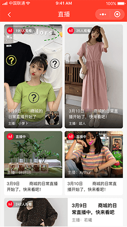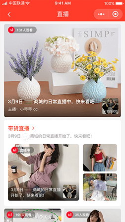 把商场搬进直播间,消费者可在微信小程序内直接访问商家的直播间,与主播互动,直播过程中即可下单,缩短用户购买商品的思考时间,起量速度快、成交路径短。